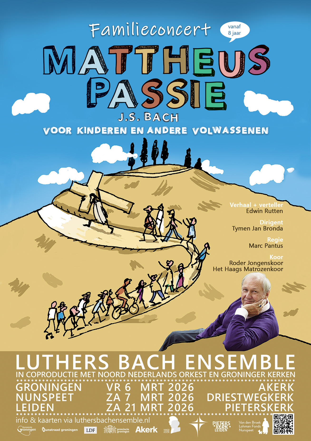 Edwin Rutten (‘ome Willem’) neemt je mee in een bijzondere familievoorstelling rond de Matthäus Passion. Met zijn meeslepende vertelstijl maakt hij het beroemde meesterwerk van Bach toegankelijk, spannend en ontroerend voor jong en oud.