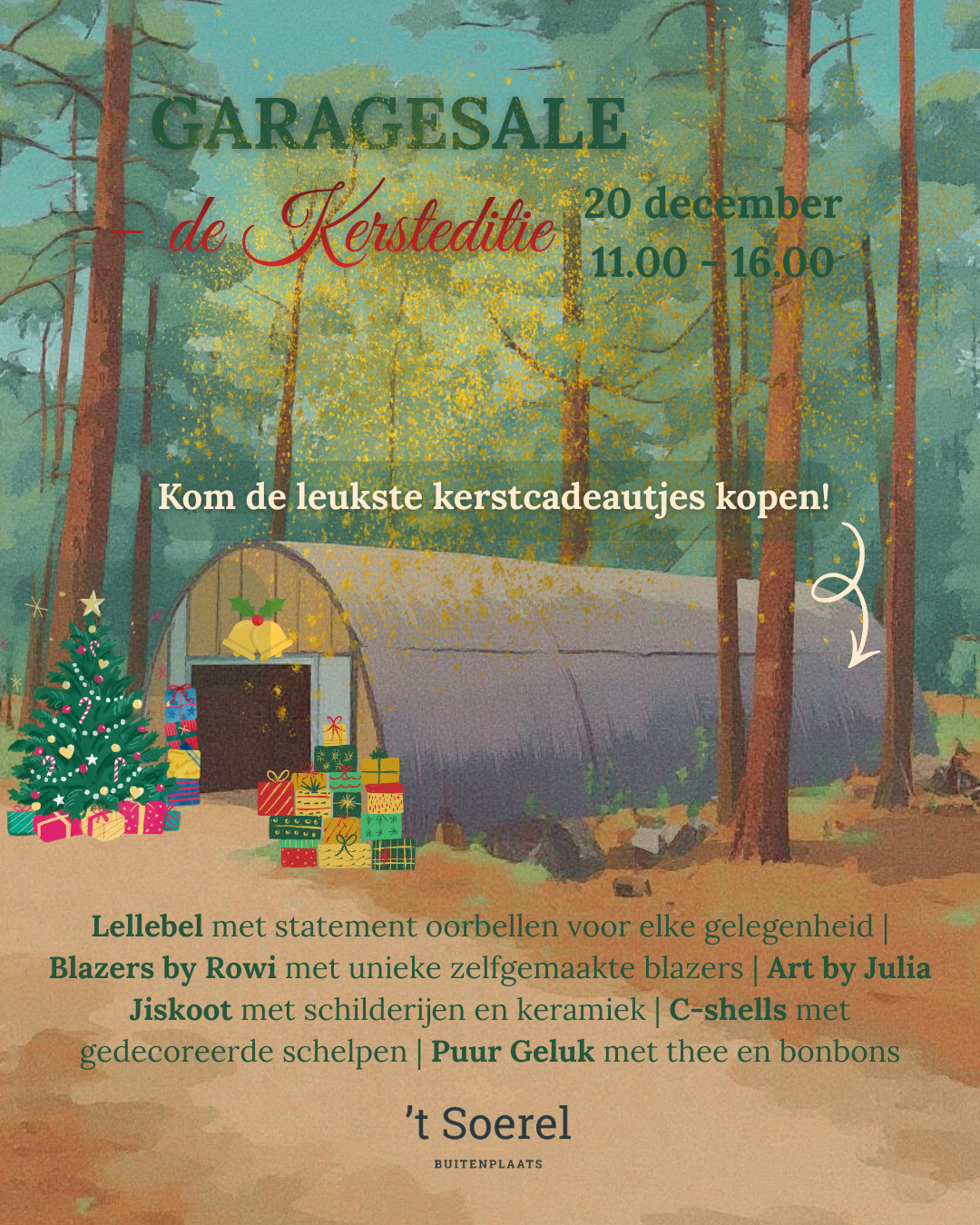 Kom op zaterdag 20 december de leukste kerstcadeautjes shoppen bij de garagesale op het terrein van 't Soerel.