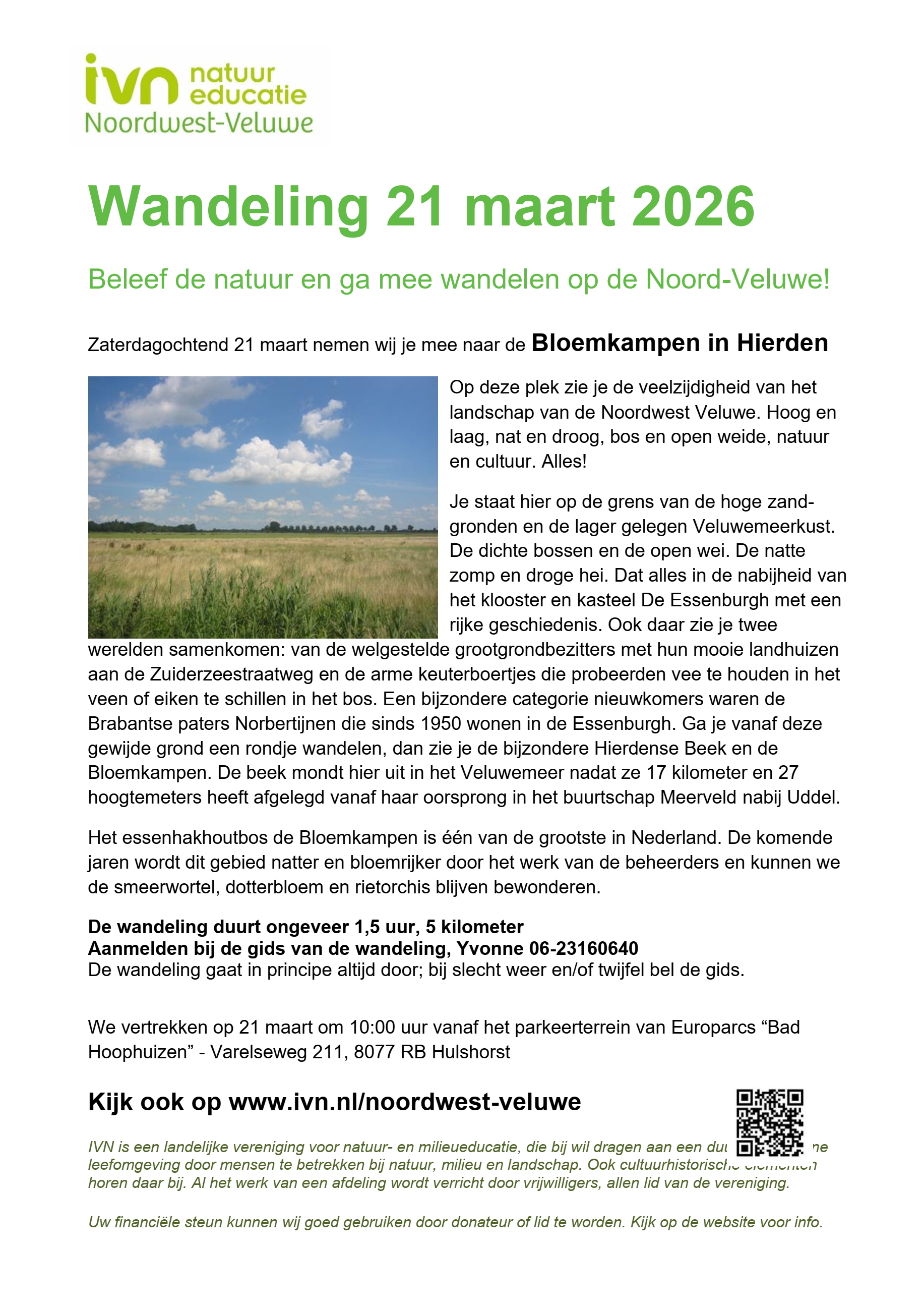 - Aanmelden bij de gids van de wandeling, Yvonne 06-23160640