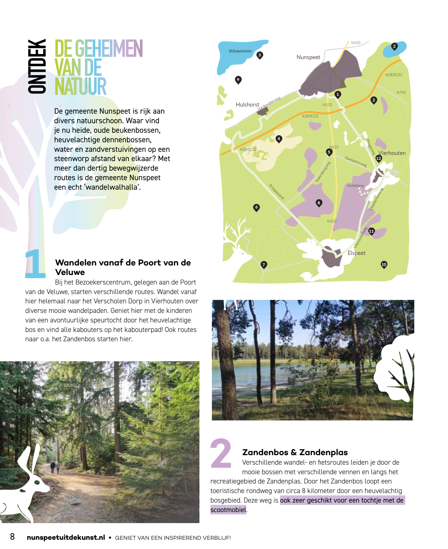 Dit staat boordevol interessante wetenswaardigheden over alles wat je in Nunspeet, Vierhouten, Elspeet en Hulshorst kunt doen, over onze mooie natuurgebieden, fiets- en wandelmogelijkheden, geschiedenis en nog veel meer.