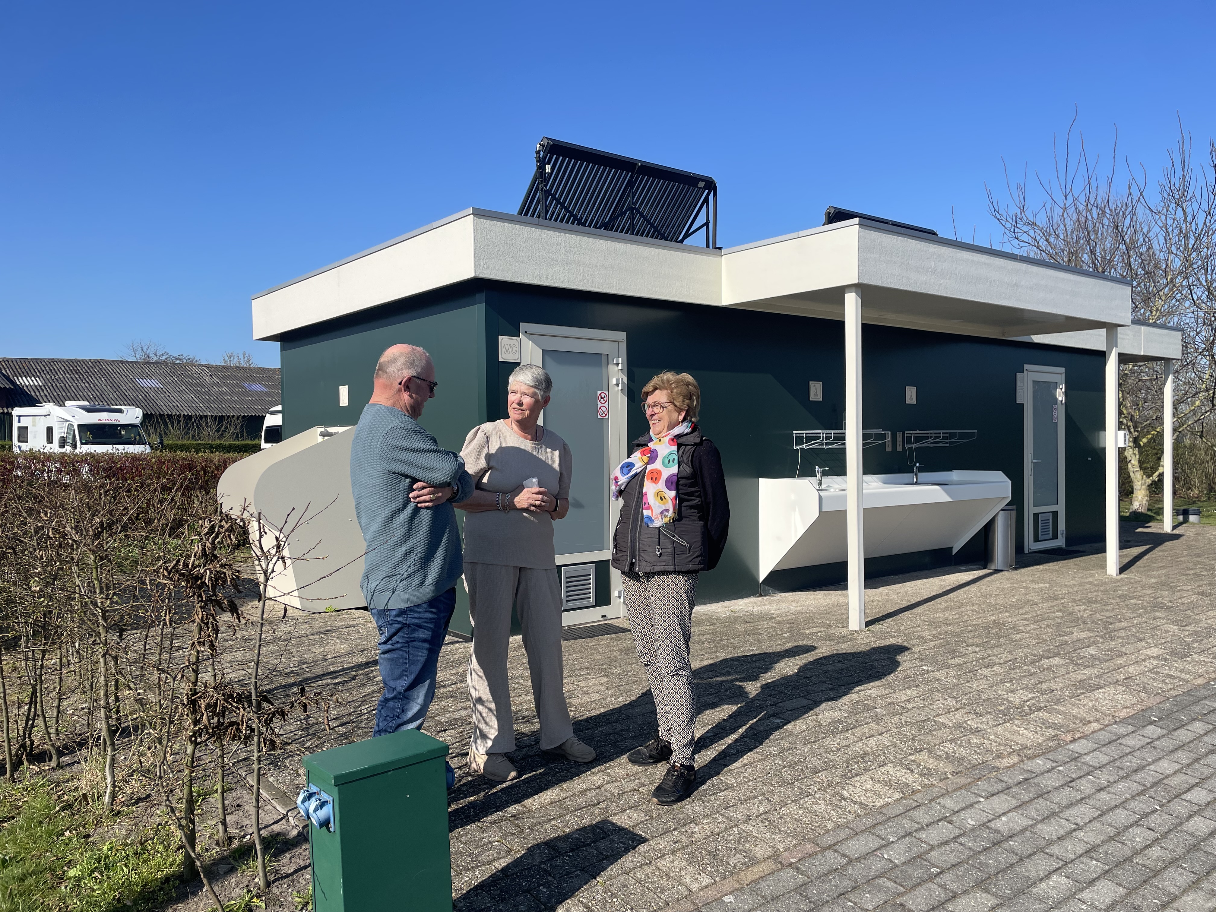Het sanitair is verwarm met ruime douches en toiletten. Ook in de winter is dit toegankelijk. Verder is er een stortplaats voor vuil water/chemisch toilet, een watertappunt en stroomaansluiting.